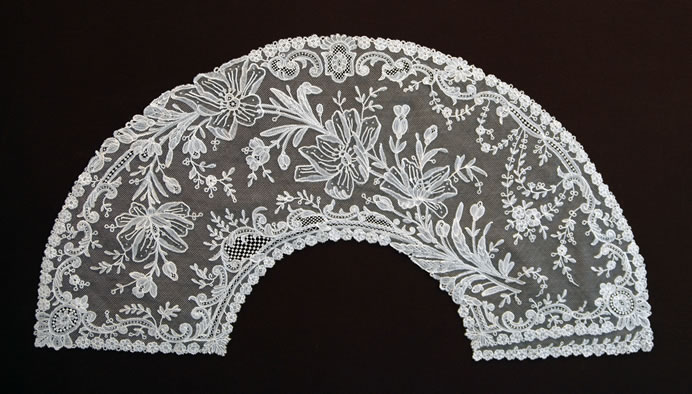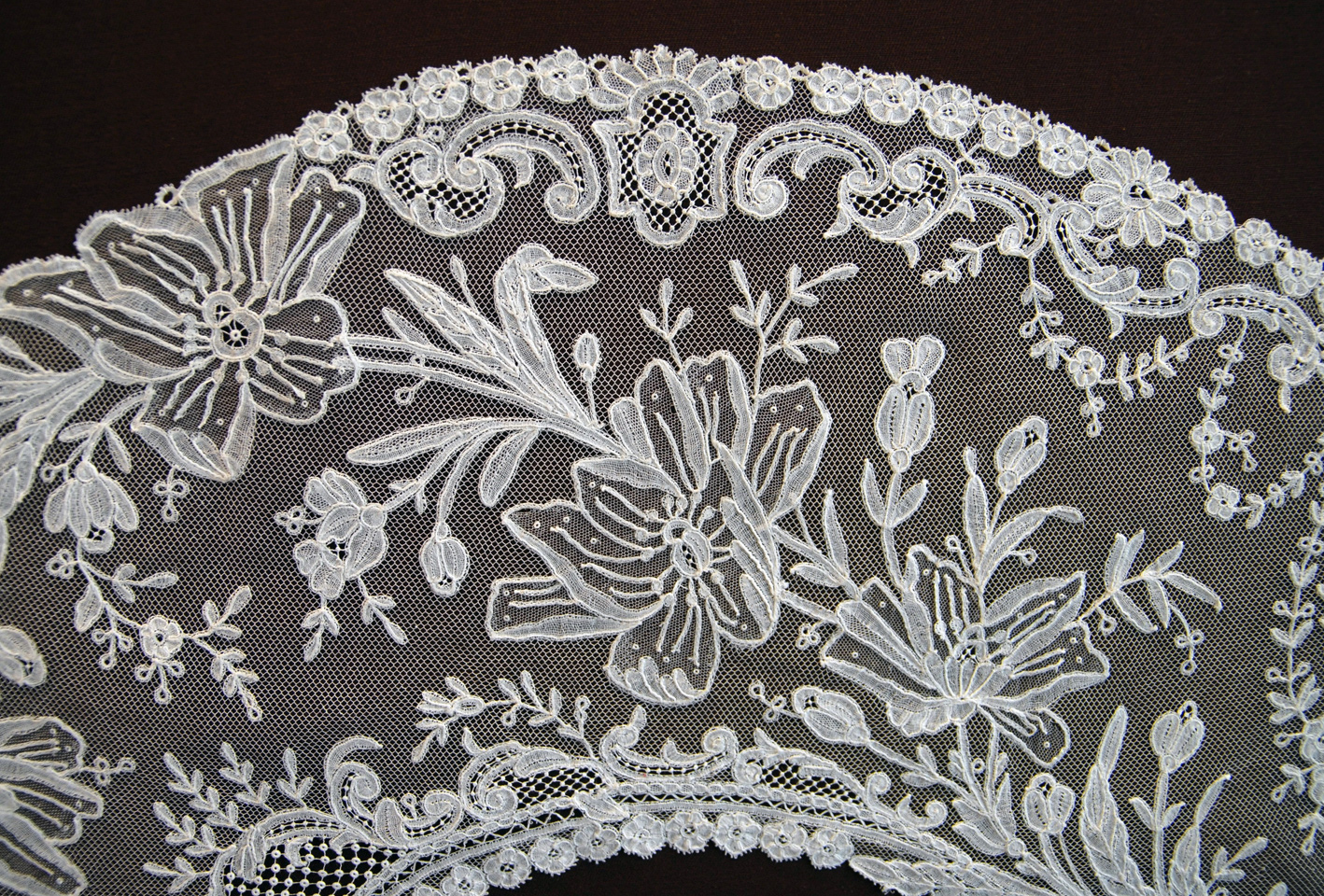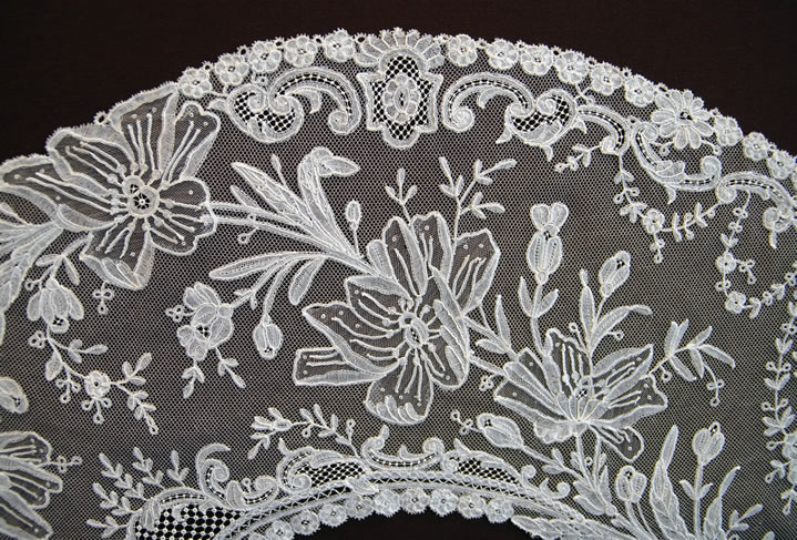 Belgian bobbinlace applique on Machine-Made Net fan leaf