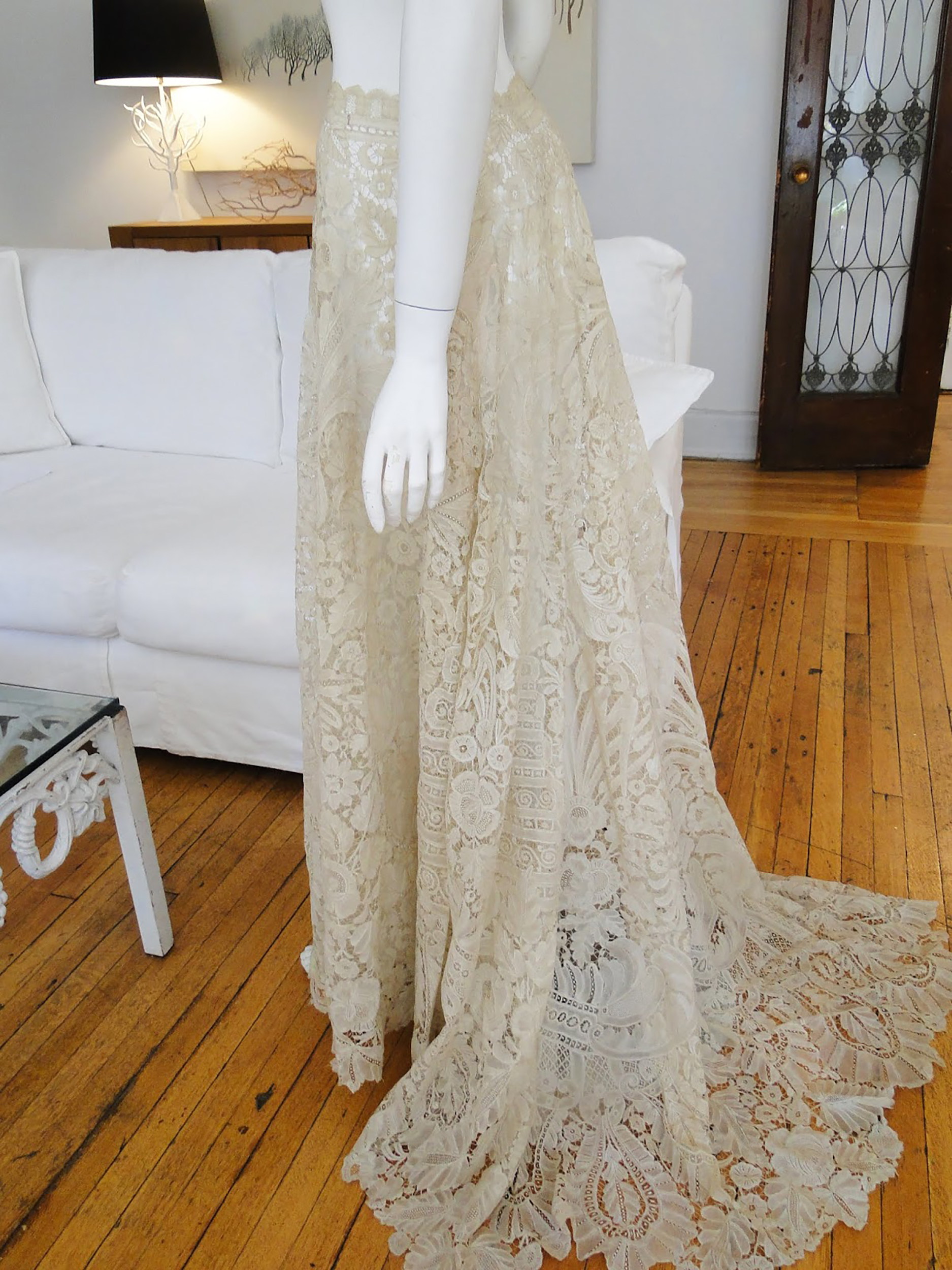 Bruges or Ghent Skirt Measuring apprx. almost 36" around waist, 44-45" long, 62" for train, and circumference is apprx 220 inches or more. Skirt with train, a little like Belgian_pieced_collar_1. Bruges? Ghent? purchased 09/21/2018 |
