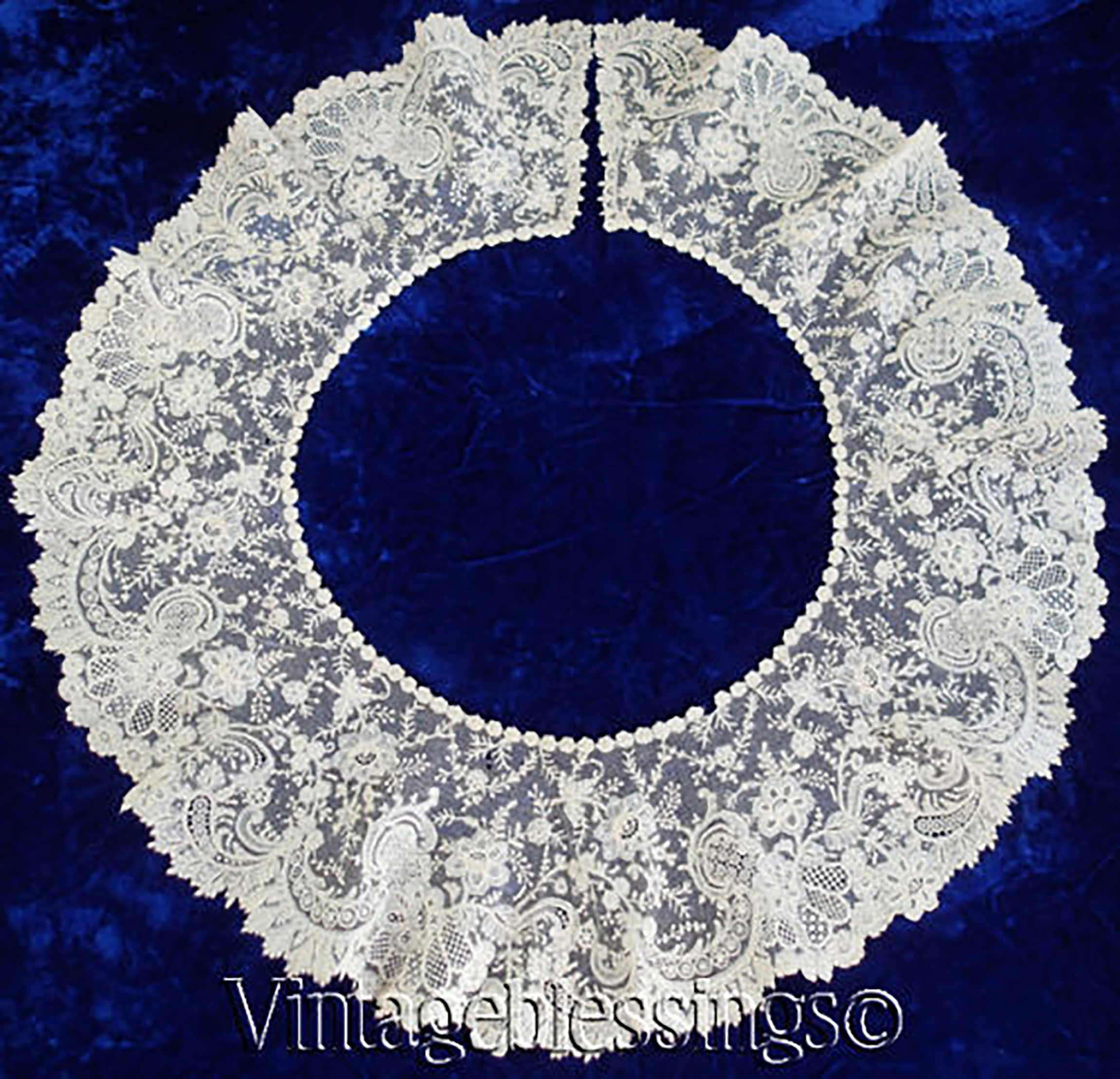 6" to 6.5" deep x 39" neckline Some small holes in the mesh, one gap along neckline. Flower is probably not missing.