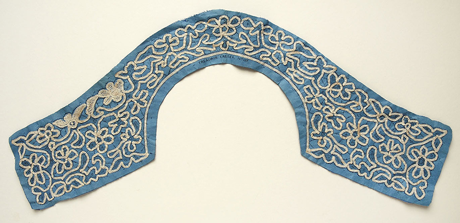 Blue backed 'battenburg' pattern, taped laid and a few fillings in.