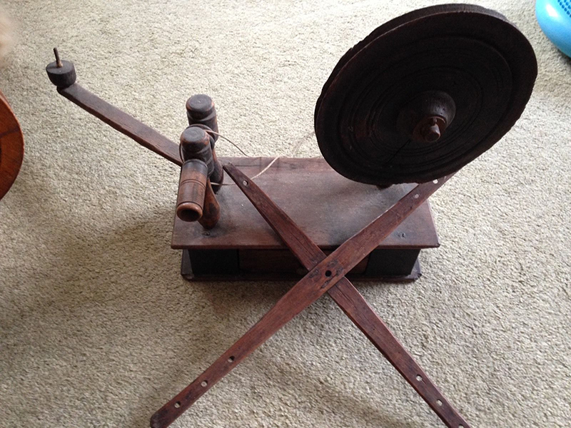 Need measurements. An English oak solid-wheel windmill bobbin winder. This winder came with a square pillow (square_7), a strip of Beds lace, 24 bobbins, 3 prickngs, 3 cover cloths, thread, and a bobbin box (Bobbin_box_2). Seller's statement, 03/25/2017: Hi there, happy to have a discussion about any thing, via email. We have an awful lot of lacemaking equipment it seems that my great great great grandmother did a lot of it! In Northamptonshire. We have hundreds of wooden and bone bobbins, a lot of lace thread and Lace itself. We had some lace professionals from Norfolk and Suffolk come over yesterday and have a look through it, so we are a little bit better informed about what is what, but in general we don't do lacemaking ourselves so don't know a lot about it! Perhaps the best thing is to photograph it?