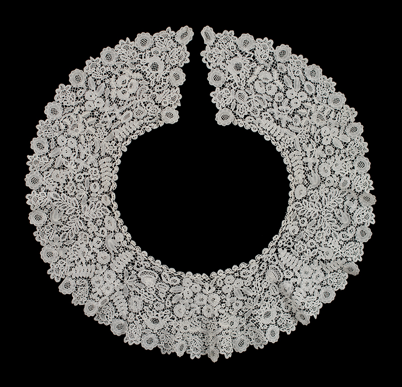 Honiton bride ground bertha need measurements Snails/Sluggs style, typical Honiton design, birds & butterflies. Bride ground. Technique good. purchased 11/25/2009 |