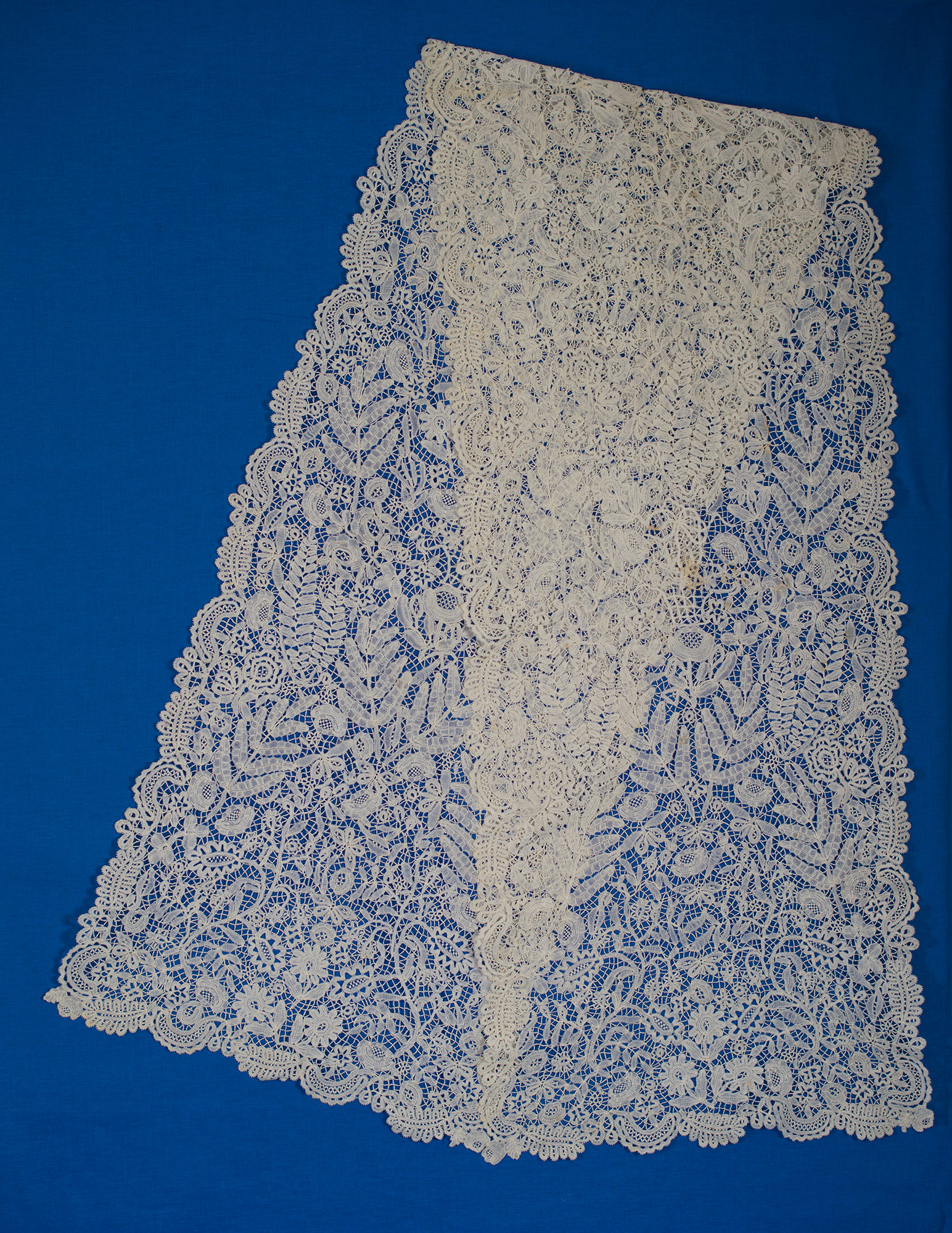 Honiton bride ground shawl with butterflies 17" x 80" Snails/Slugs style, some butterflies, slightly large motifs, picoted bride ground. purchased 09.39.2913 |