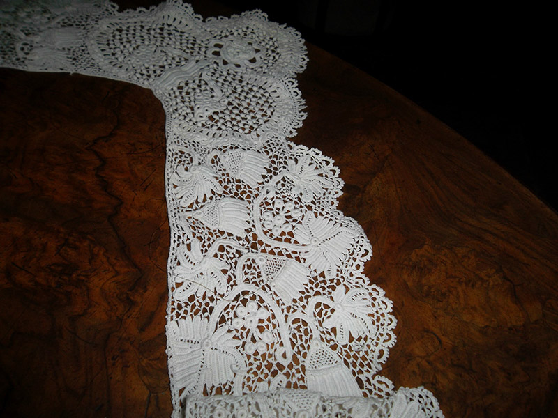 Guipure d'Irlande Rectangular Border border for a rectangular cloth - ~50" x ~50" x 5" wide (scalloped) Clones knots, picoted bride ground,, chrysanthum petals. purchased 02/17/2012 |