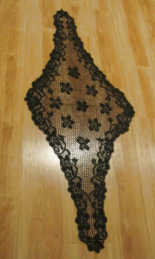 Black silkLe Puy? 5 petal flower, complex ground, some point ground fillings.