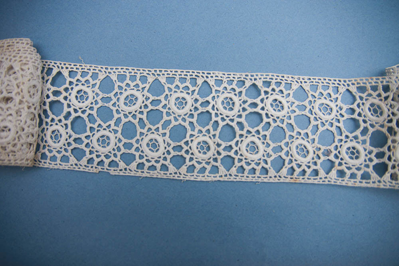 Simple round motifs, heavy ring inside, needlelace star pattern filling.