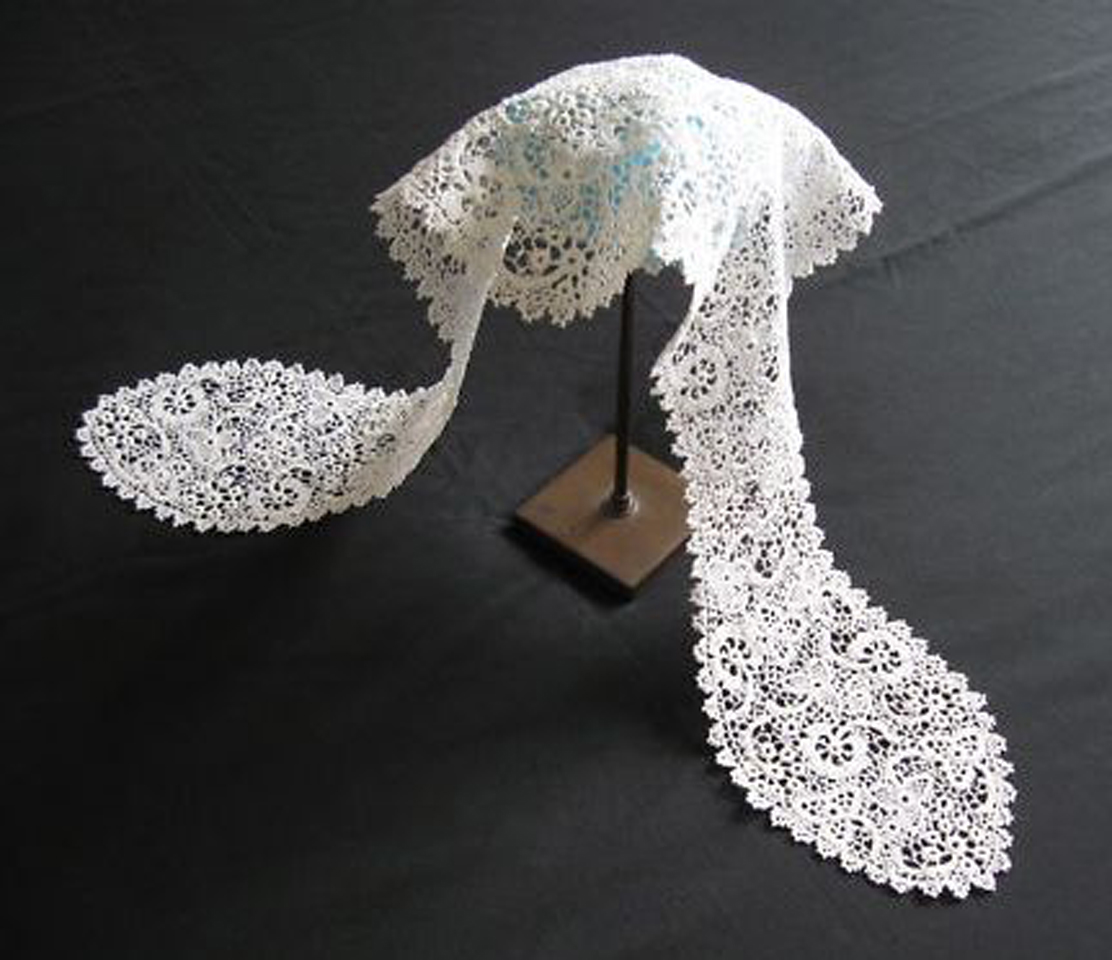 Width across end to end~33ins or 84cms. Width at top of cap~10.1/2ins or 26cms. Very white. Good condition, no spots or damage.