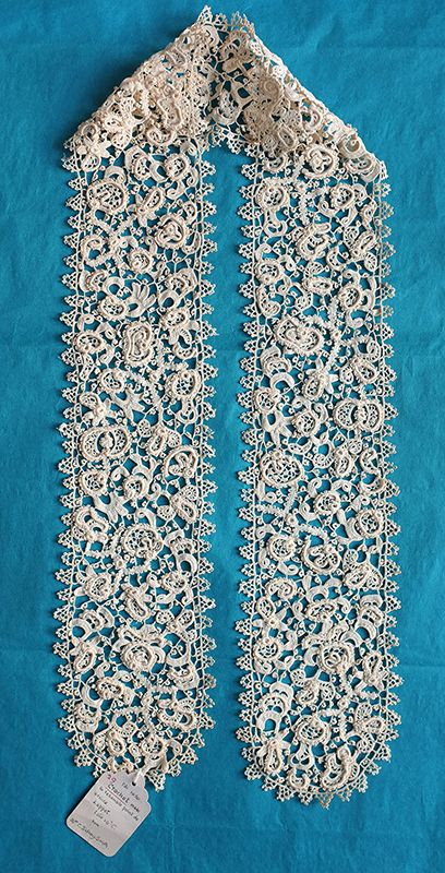 Tag: No 1050 Crochet made to resemble point de Venice Lappet Late 19th C. from Mrs. C. Sidney. Smith.