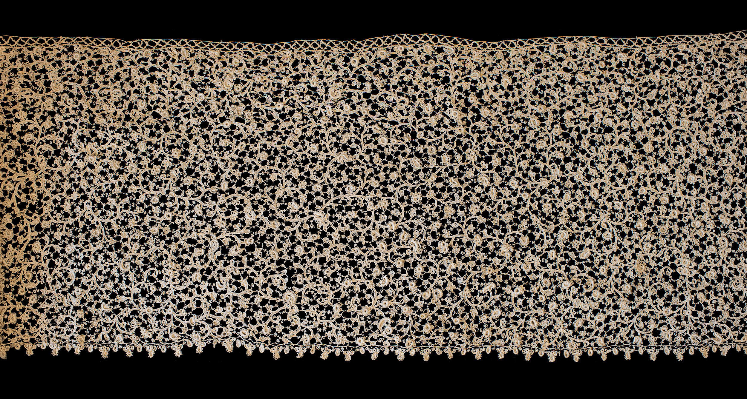 9.5" x 48" (24.13cm x 121.92cm) Point de Neige border, looks original except for the end borders.