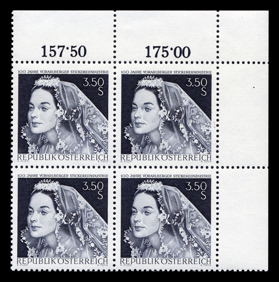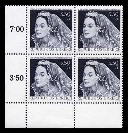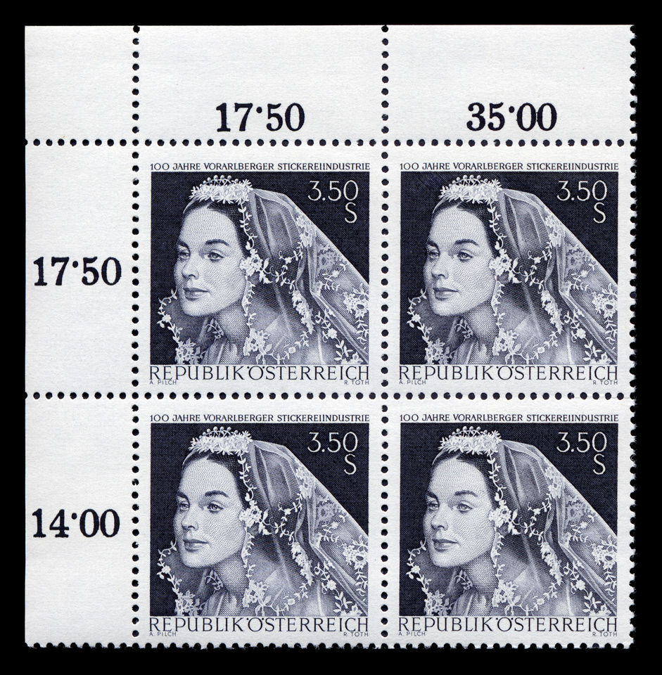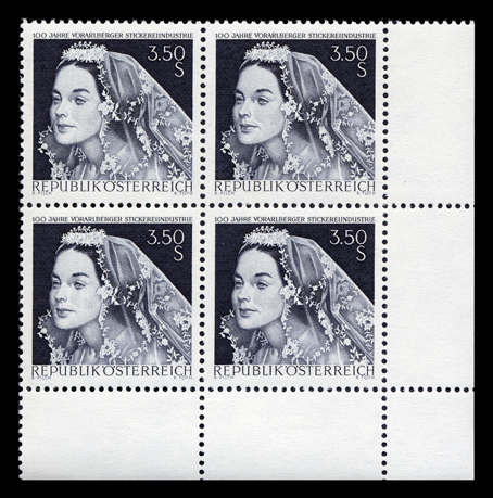Vorarlberg Under construction I haven't found a complete pane of these stamps, so I don't know if the 4 quarters shown here will actually make up a complete set. I have a feeling it's too small - maybe should be 5 high by 10 wide, if you go by the numbers. Hopefully I'll be able to replace it with a complete pane one day. first posted 5/2/2009 |