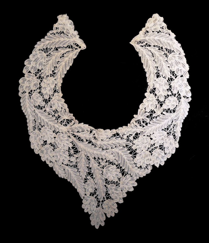 Feathery leaf design with small needlelace accents at line terminations in flowers. Quite unusual.
