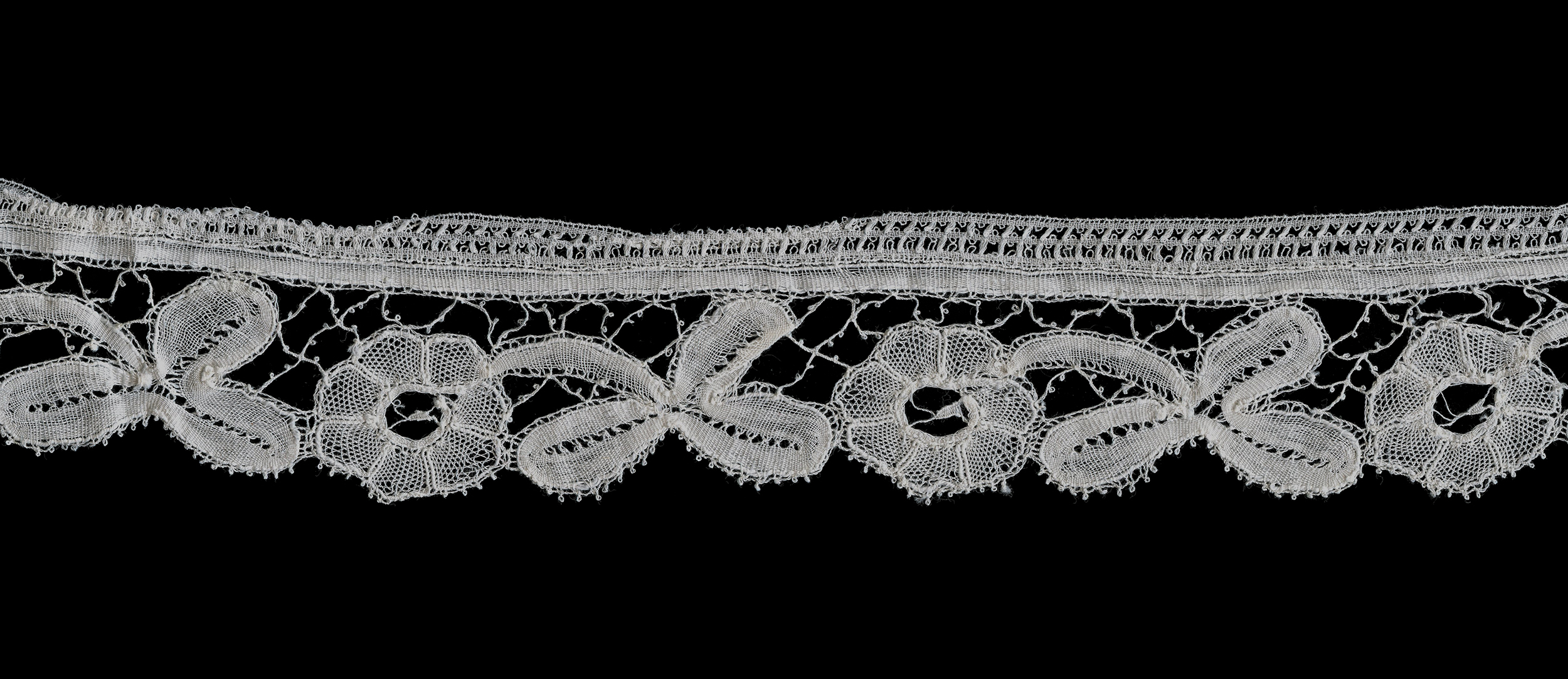 1.37" x 169.29" (3.5cm x 430cm) Simple repeat of halfstitch flower and trefoil, typical Bloemwerk patterns.