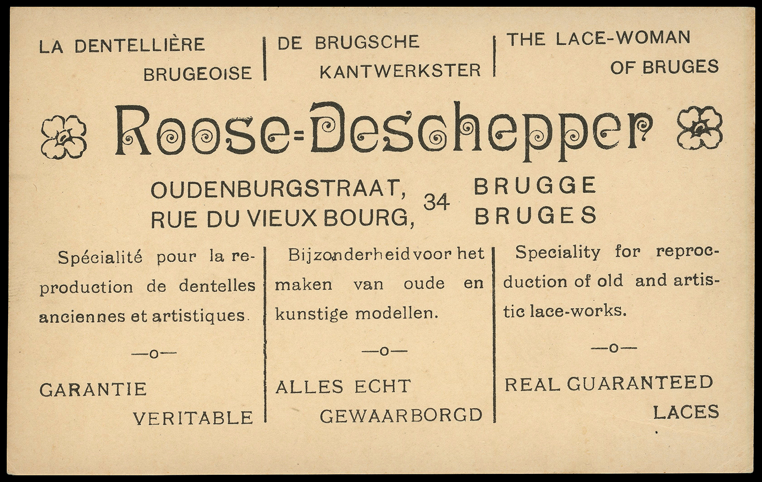 top: 3.375" x 5.5" (8.57cm x 13.97cm) Printed by A. Brusselle, Steenstraat, 41, Brugge.