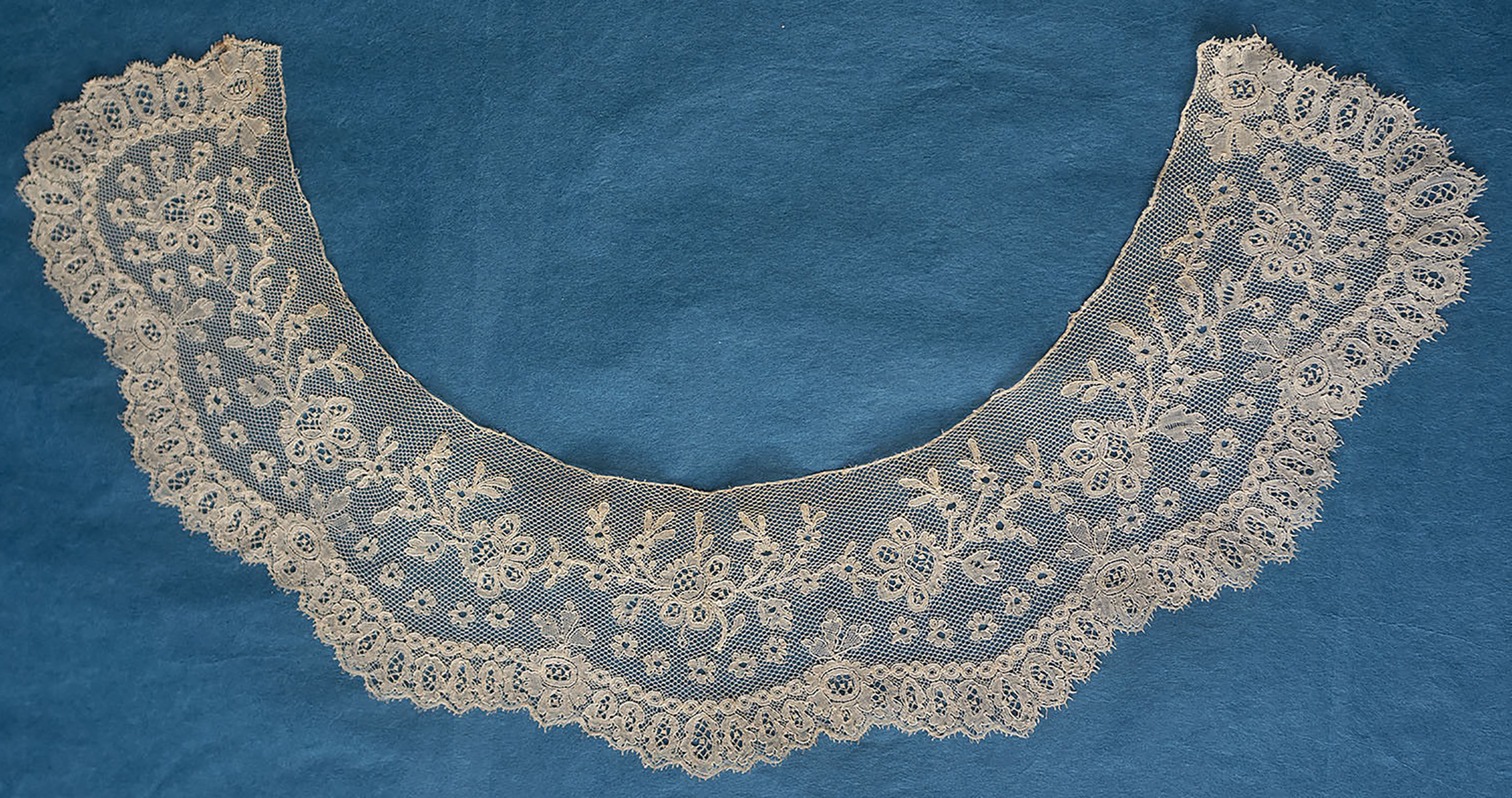 2.75" deep, 31" neckline (7 cm deep, 31 cm neckline) A little browning, one small spot near upper left inner corner.