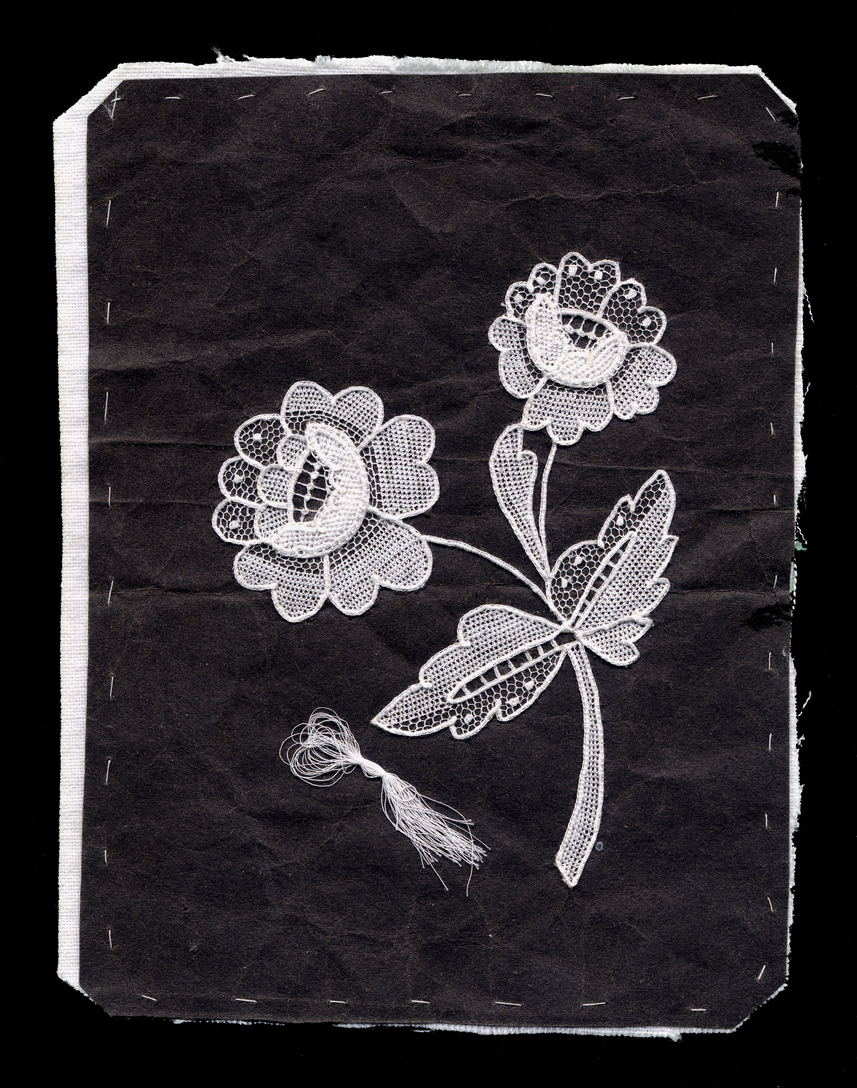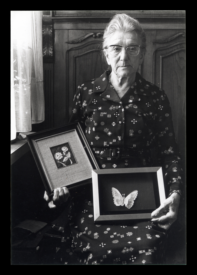 Point de Gaz Technique A few inches on each side. Purchased from the artist, Mrs. Thienpondt, visit to Zele Belgium in 1979. Sample cost $5.00. She died in 1980. purchased ~09/20/1979 |