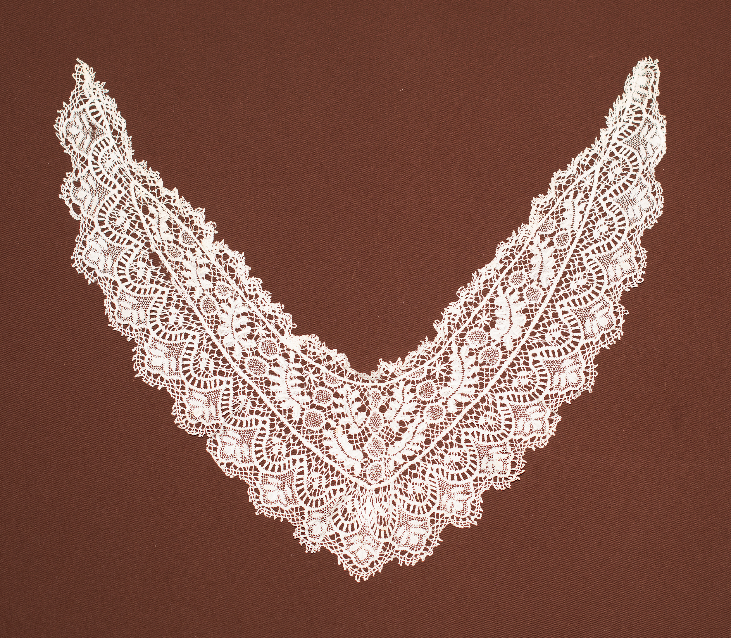 48" outside border Similar to Beds_shawl_collar_1 but with 4 circular motifs in the center. Three part design with oak leaves. This is the same as Beds_shawl_collar_7, but with a different edge pattern.