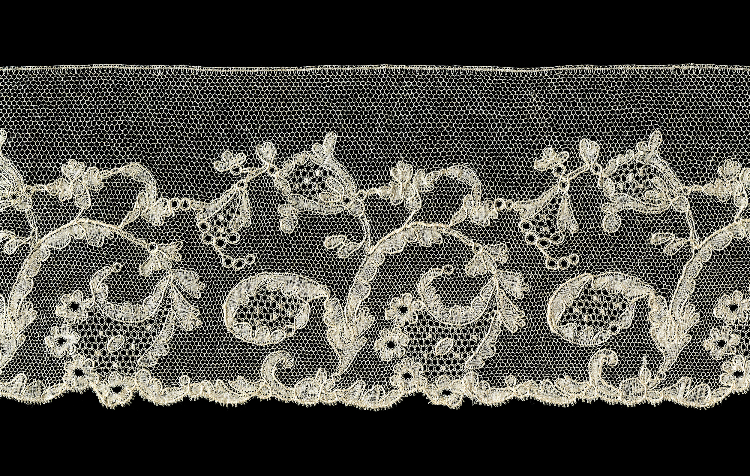 Bucks border 5" x 3 yards Bucks pattern, no esprits in the ground. Note the woven tallies in theHoneycomb rather than the typical Mayflower pattern. purchased 05/11/2019 |