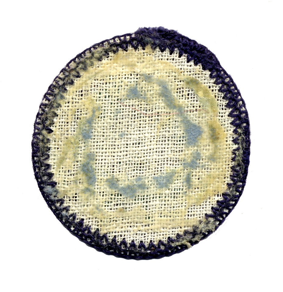 Blue embroidered on white felt approx 35mm diameter. 1910 to 1922