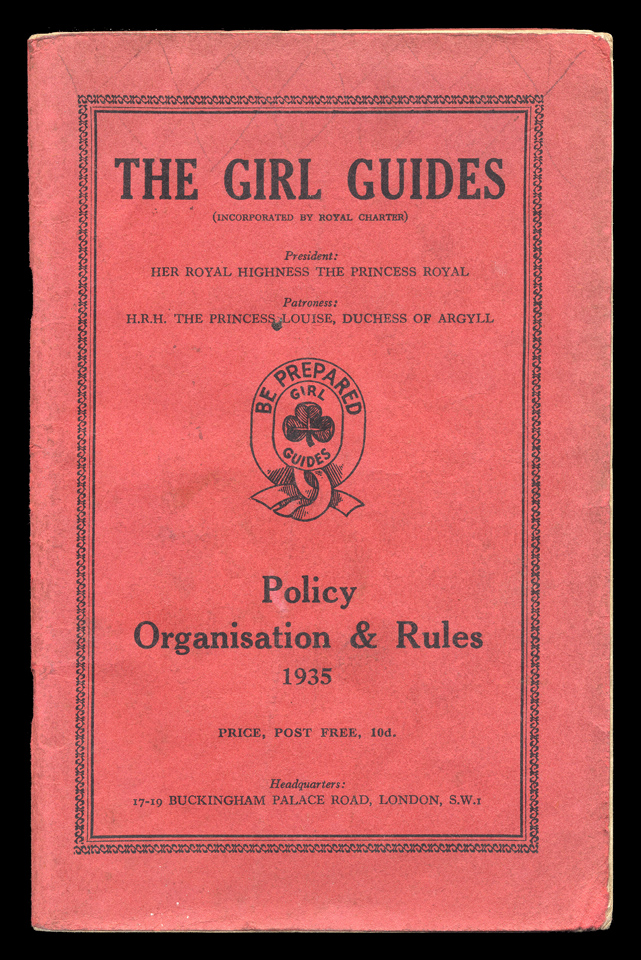 Green embroidered on navy blue felt approx 35mm diameter with Girl Guides. Mid 1930's to early 1940's