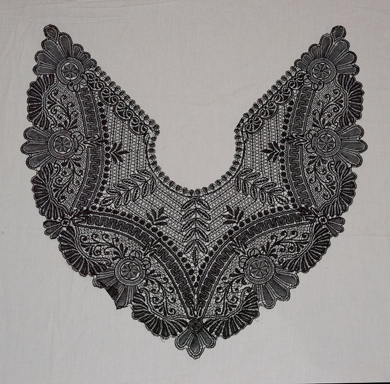 13" deep center back Some motifs not attached. Some small breaks around collar.
