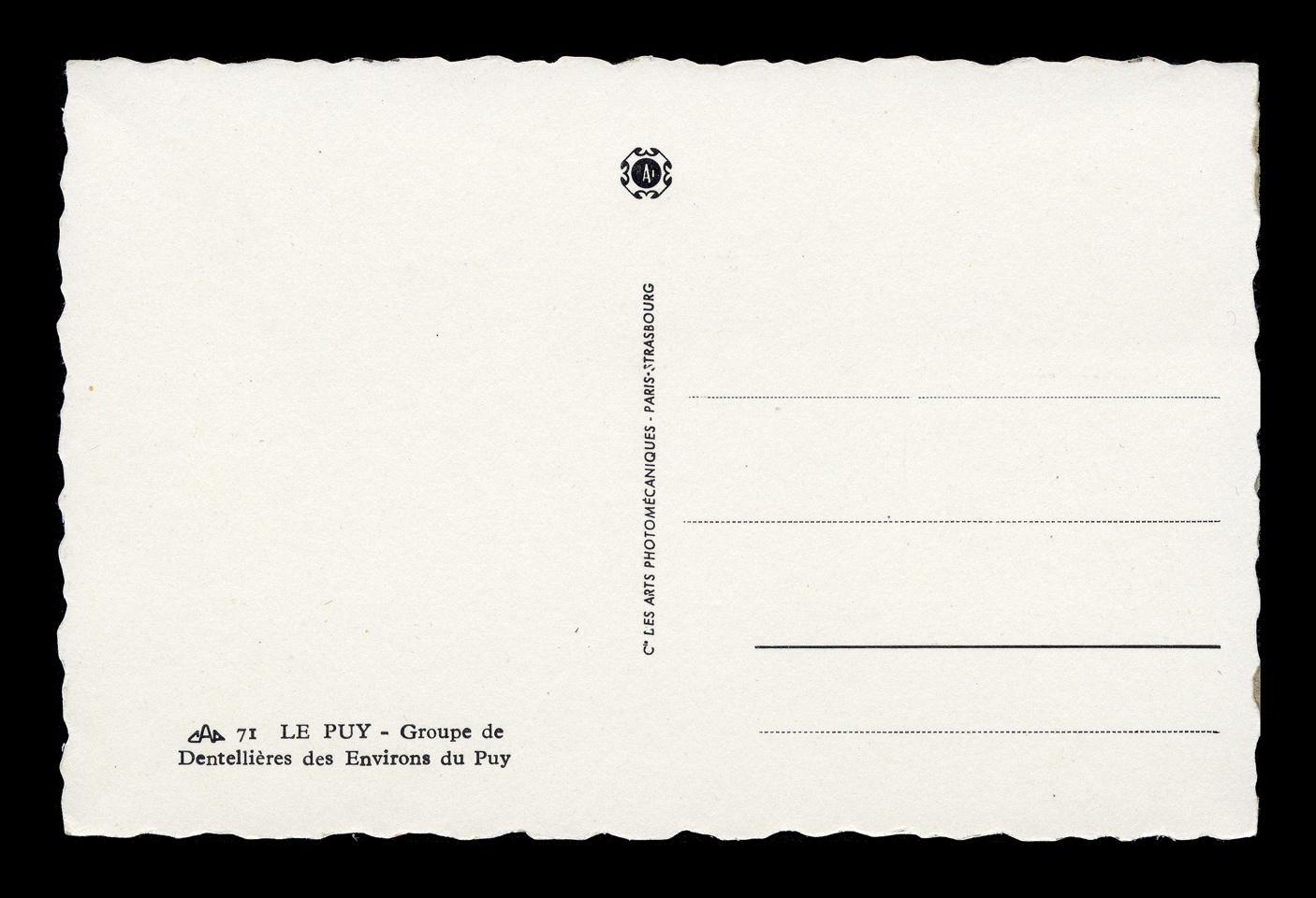The backsides of postcards are remarkably consistent across different producers, and often provide a clue as to the date of issuance. I have scanned unwritten examples to associate with each card - these are the same as the ones used on each card, but without any writing that might be present on that particular card. Divided backs started to appear in France in 1907, and were in general use by 1910. Click here to return to Lévy postcards.. first posted 6/28/2009 |