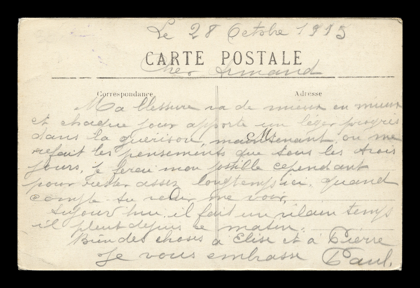 A French law dated November 18, 1903 required that the address side of the postcard be divided into two parts, one for writing a message. The two parts needed to be separated by two vertical lines. In 1904 a new regulation required the phrase "tous les pays étranger n'acceptent pas la correspondance au recto" to be printed on all cards. from 1904-1907 the address side was larger, and some of the message was often written on the front of the card. Click here to return to M. L. - Lorphelin postcards. first posted 8/9/2009 |