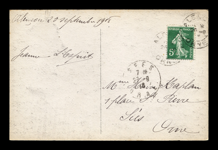 A French law dated November 18, 1903 required that the address side of the postcard be divided into two parts, one for writing a message. The two parts needed to be separated by two vertical lines. In 1904 a new regulation required the phrase "tous les pays étranger n'acceptent pas la correspondance au recto" to be printed on all cards. from 1904-1907 the address side was larger, and some of the message was often written on the front of the card. Click here to return to M. L. - Lorphelin postcards. first posted 7/18/2009 |