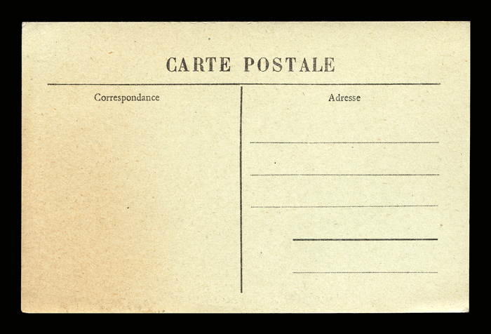 The backsides of postcards are remarkably consistent across different producers, and often provide a clue as to the date of issuance. I have scanned unwritten examples to associate with each card - these are the same as the ones used on each card, but without any writing that might be present on that particular card. Another divided back used by some examples of postcards issued by "Éditions d’Art Margerit-Brémond – Le Puy". Divided backs started to appear in France in 1907, and were in general use by 1910. Click here to return to Margerit-Brémond 2 postcards. first posted 8/7/2009 |