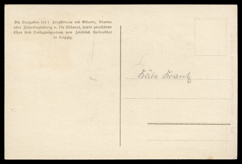 The backsides of postcards are remarkably consistent across different producers, and often provide a clue as to the date of issuance. I have scanned unwritten examples to associate with each card - these are the same as the ones used on each card, but without any writing that might be present on that particular card. Divided backs started to appear in France in 1907, and were in general use by 1910. Click here to return to A. Günther postcards. first posted 6/10/2011 |