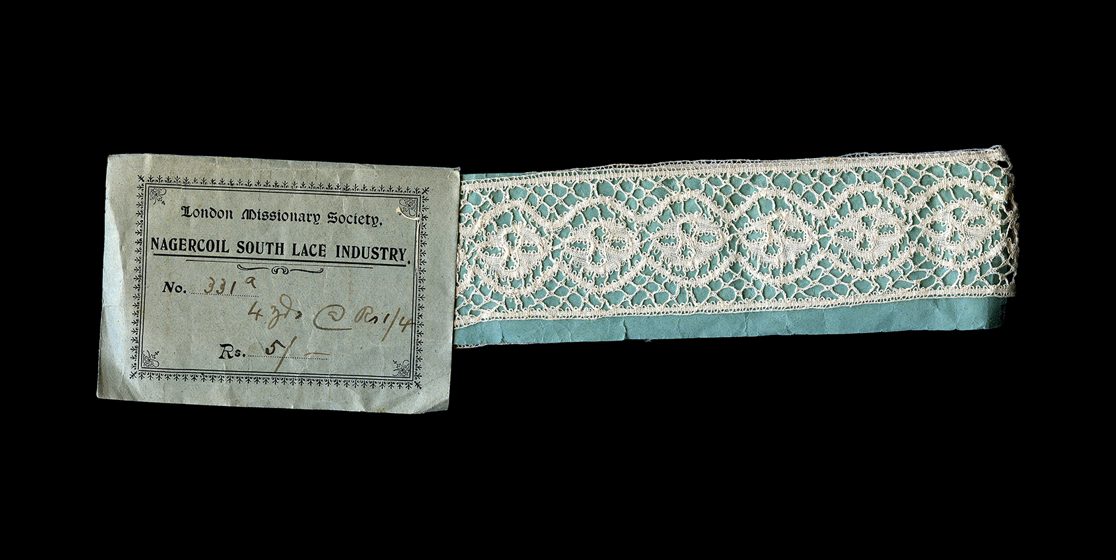Nagercoil insertion 4 yardsx 1.5" in original packing. Haven't unpacked it to check. Beds trails, simple but well done. purchased 04/20/2013 |